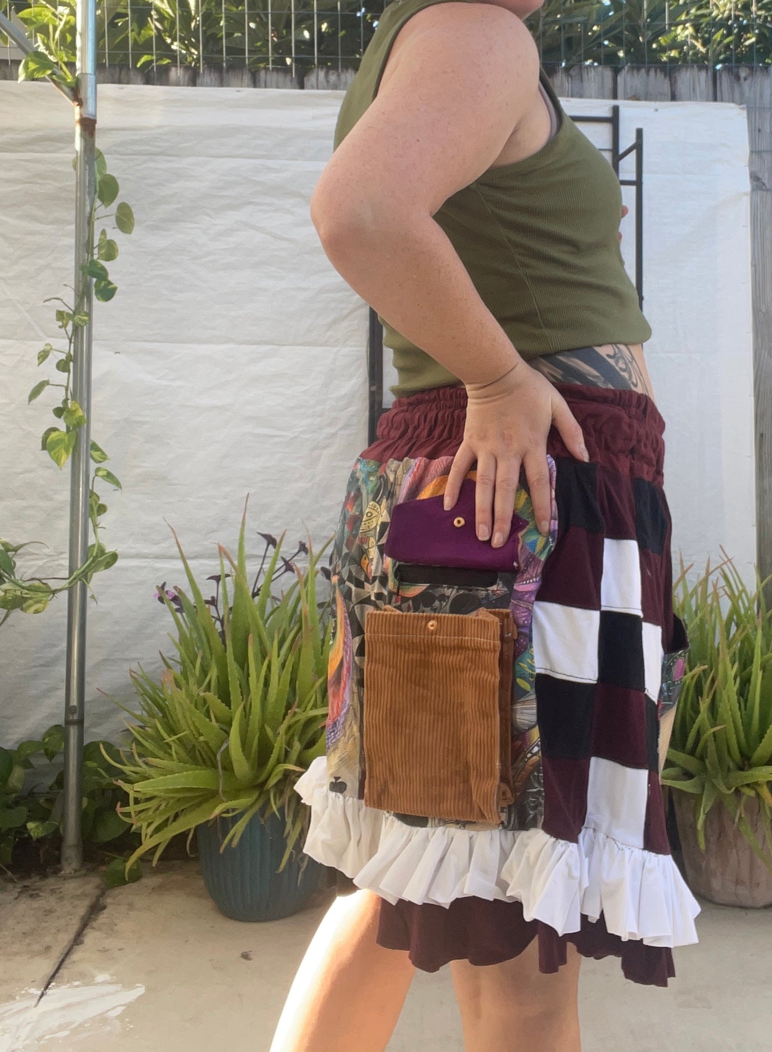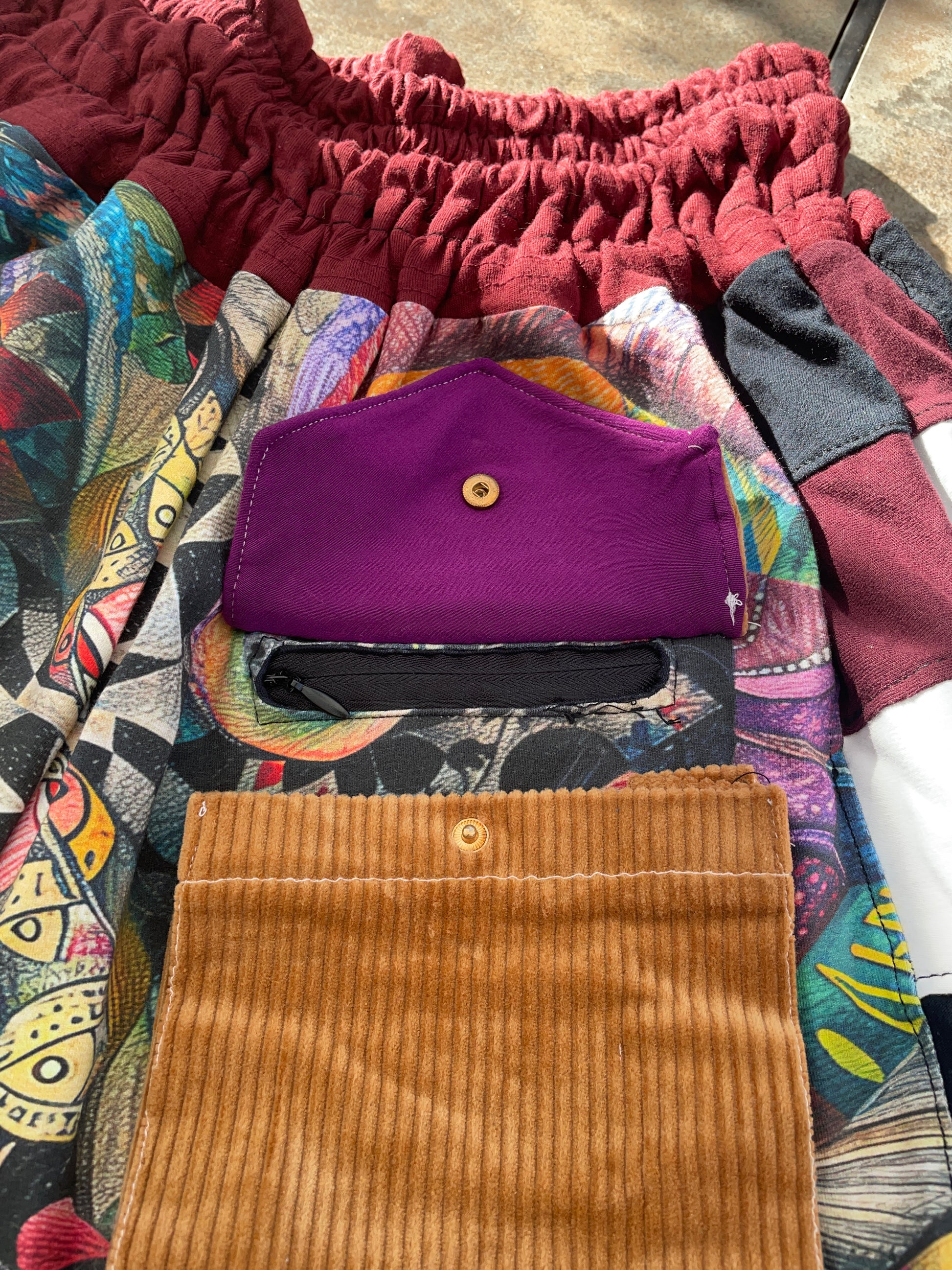 hidden stash pocket inside top of cargo pocket, plus side pockets