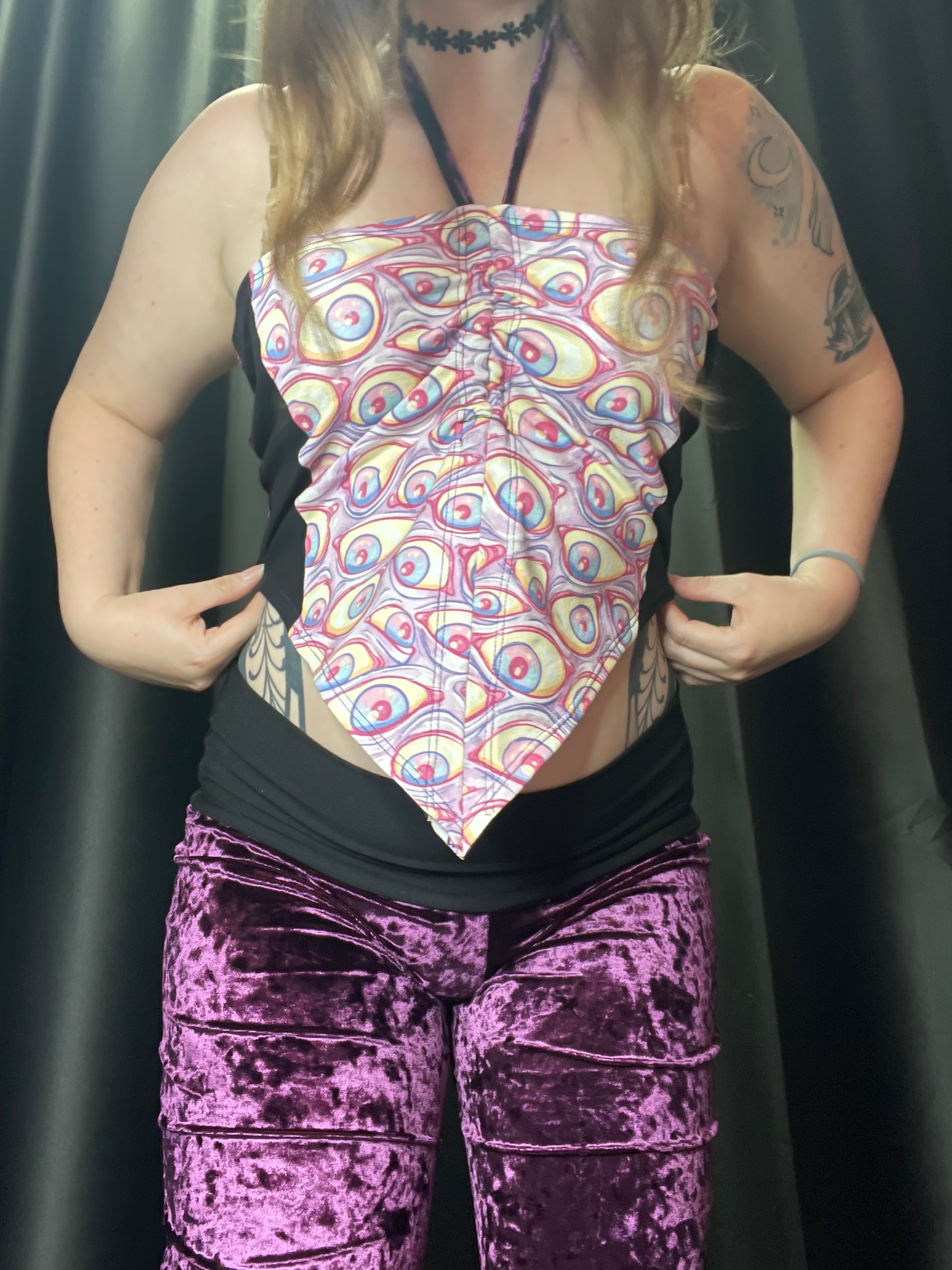 i have the sides tucked in to show how it would lay properly in the front, i am a size S/M