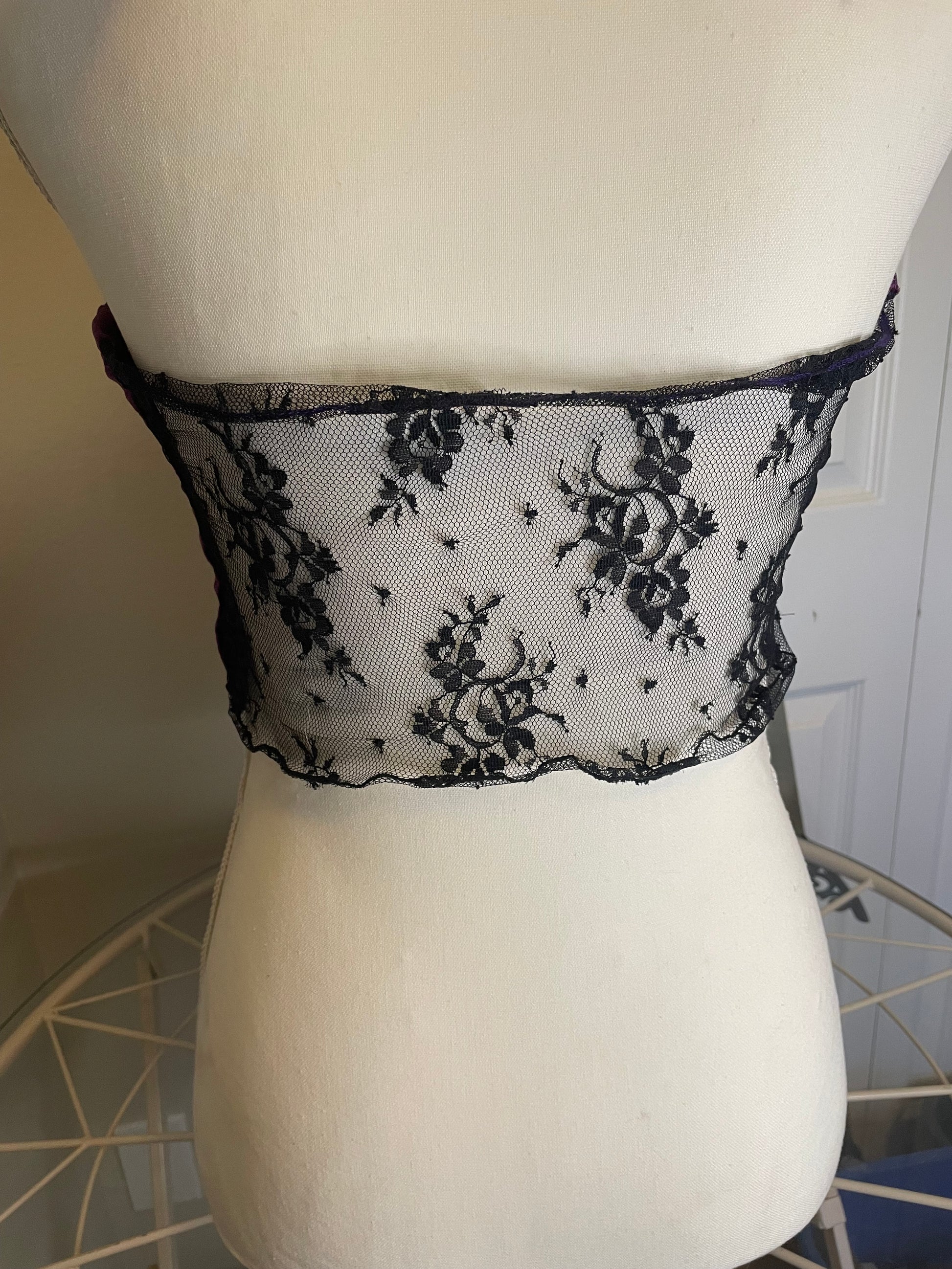 95% cotton spandex, poly velvet, lace
